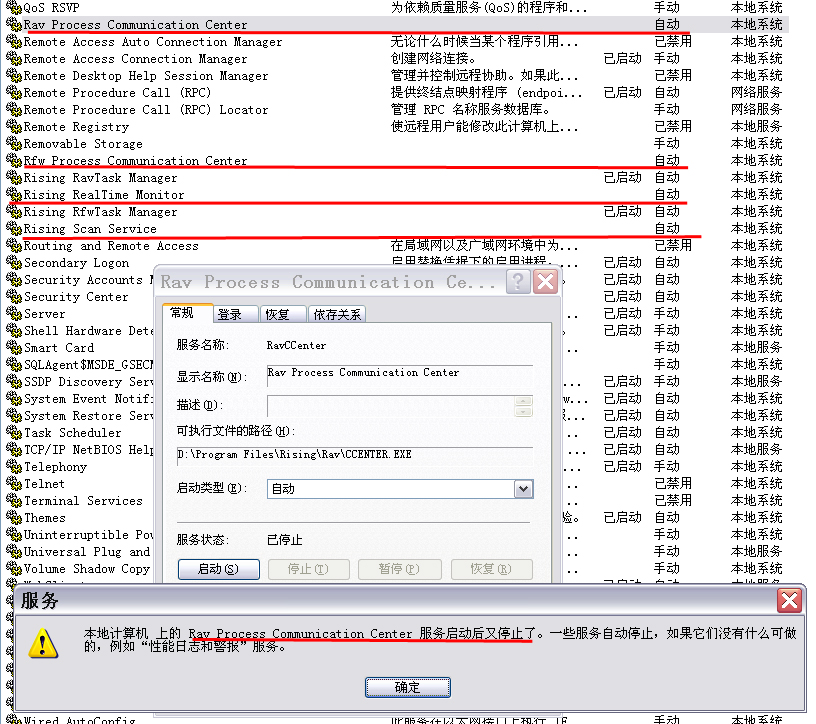 的提示,修复后还是无法启动监控保护,打开“服务”,发现瑞星有好几个服务都无法启动,请问这该怎么办?