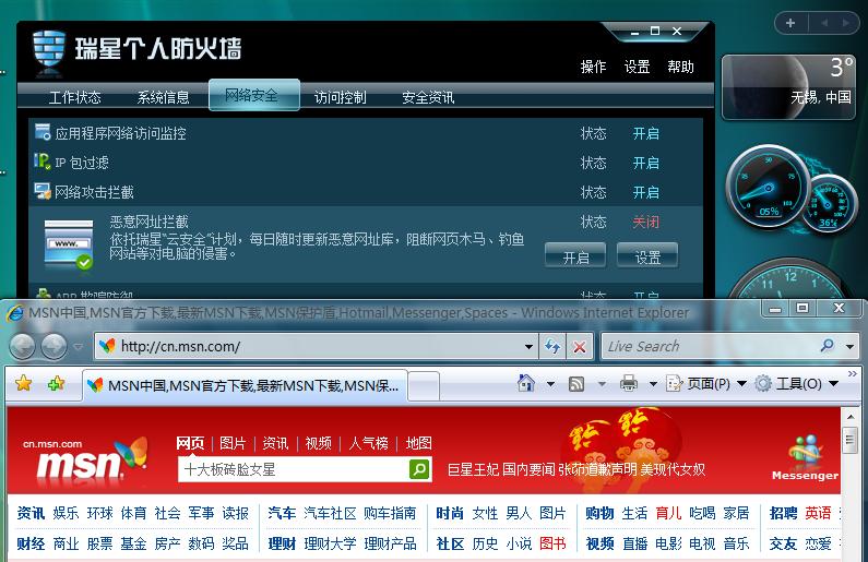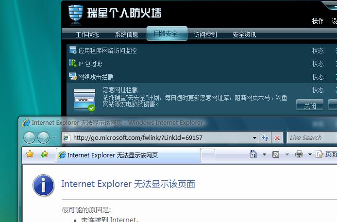 本人使用VISTA Ultimate 64位操作系统发生网卡无法加载情况!前些日子发贴了!是REALTEK RTL8168C/8111C网卡!没办法!换成VISTA Ultimate 32位的操作系统,网卡问题算是搞定了!没有再被阻止!前两天还是满开心总算能安稳的上网玩游戏了!结果没好几天!贵公司的防火墙还真是厉害!今天更新到21.19.12版本!厉害!网页又开始打不开了!连我侧边栏上的小工具天气预报都开不了!非要关闭恶意网站拦截才能打开!这个防火墙脾气也太大了点了吧!我们可是受也受不起啊!再这样下午让我们用户怎么用下去!怎么说贵公司的杀毒软件也要200多一张!难道非要把我们都赶跑贵公司才安心?