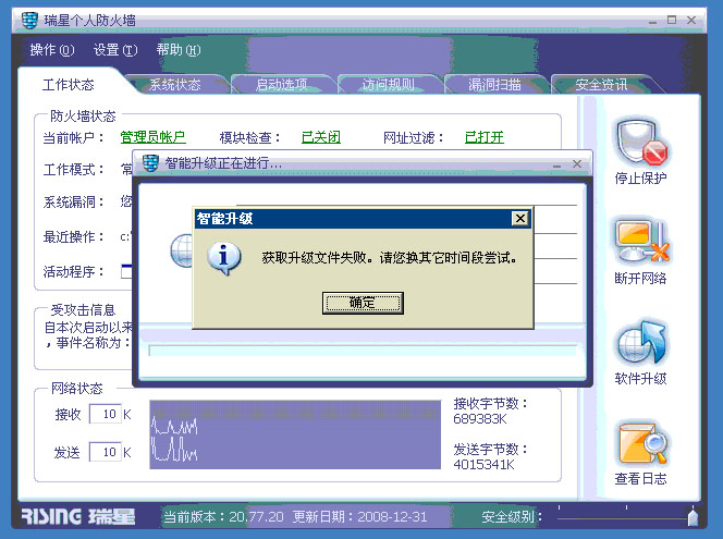 远程桌面控制升级另一台电脑的瑞星防火墙2008版到2009版断线.哎!