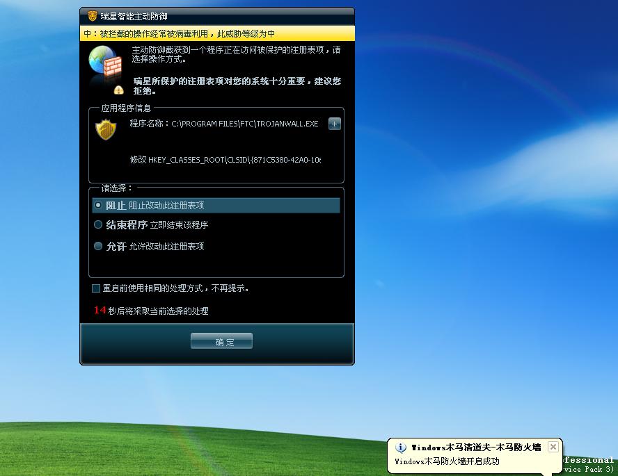 瑞星监控到风云谷程序访问被保护的注册表,怎么放行?