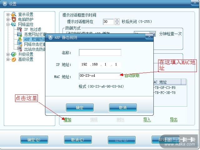 瑞星卡卡安全论坛个人产品讨论区瑞星个人防火墙V16瑞星个人防火墙2011 关于开ARP防火墙无法上网,比较特殊,是网关。