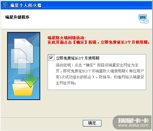 一楼的截图是瑞星回馈活动,点击确定后会延长防火墙使用期。
