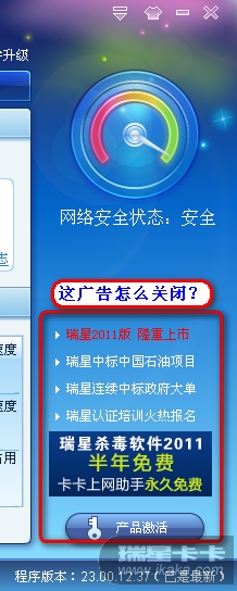 PS:瑞星防火墙升级到2011版,真是一塌糊涂,还强制广告,关都关不掉!