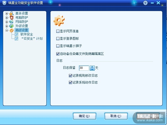 这样能比较大限度的减少瑞星弹广告的次数,如果说需要更防止的话,就需要设置高级设置: