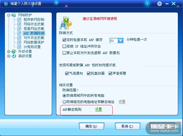 在防火墙设置中,找到ARP欺骗防御设置--ARP静态规则设置