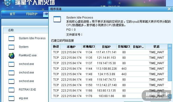 system idle process 是系统空闲进程,目标ip的不同表示您在联网过程中,所要访问的目标地址不同。
