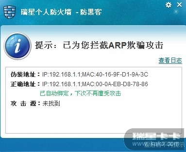 我用的单位的网,10兆的带宽,现在老是出现ARP攻击,地址却是网关,请问用瑞星能查到是哪台机子在伪造攻击吗,能查到攻击源吗?