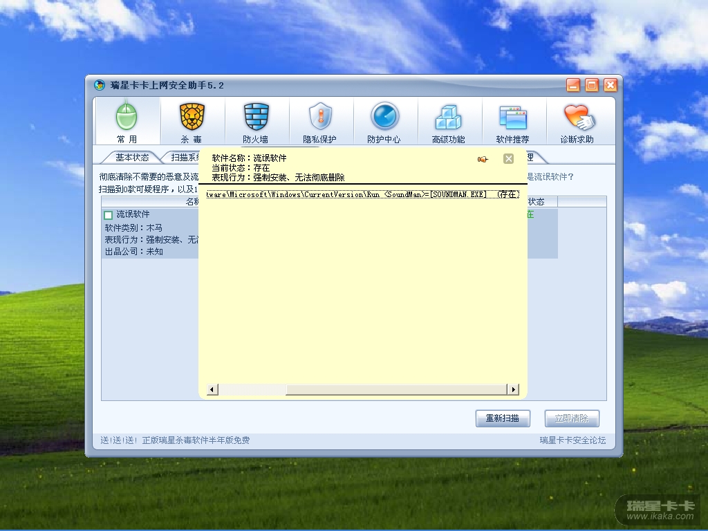SOUNDMAN.EXE 在俺硬盘中已数年矣,不想竟被 卡卡 报为木马,但俺宁可相信SOUNDMAN.EXE,也不相信卡卡,今早升级后竟不声不想误报消失了,建议瑞星向广大用户道歉。