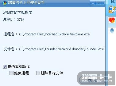 卡6好像没卡5的好用哟.好像什么都xxx一样,啊.............啊......迅雷5  你们也要杀.........并且是我点同意放行一次的"迅雷5"再次使用时也会有同样让xxx的问题.....可怜啊,,,,,,,,希望你们能搞好点,像你们瑞星的防火墙不也是只要一次放行就可以了吗?为什么卡卡做不一以啊?还有啊,那个即时发现软件更新并同时下载的功能怎么在卡6里没出现呢???哎,,,再不好的话我怀疑我还是先用回卡5好了,(嘿嘿我卡5的安装包我还没删)