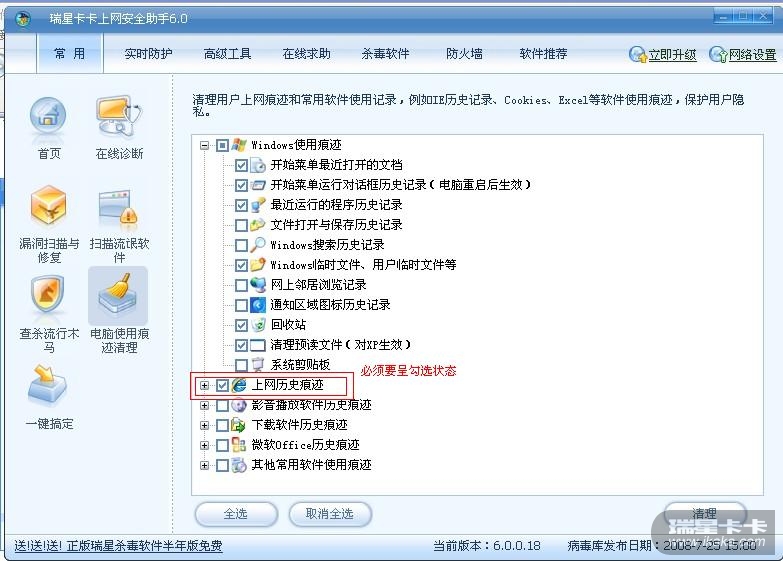 卡卡6.0 常用,电脑使用痕迹清理,在这里可以进行清理。