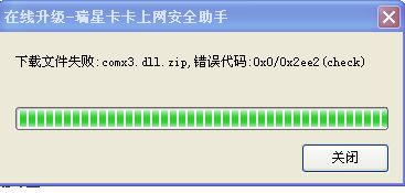 一个框子,里面说;下载文件失败:comx3.dll.zip,错误代码:0x0/0x2ee2(check).