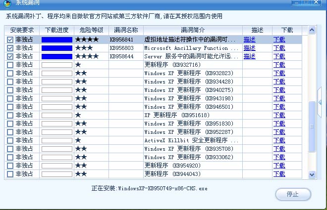 有很多是两颗星的windows XP更新程序(kb951830)如此之类,要不要修复?