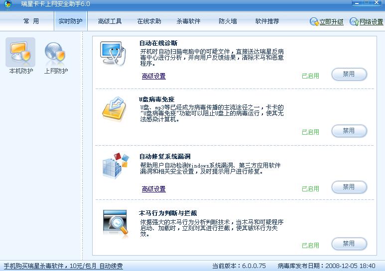 卡卡显示所有监控已禁用是怎么回事?瑞星杀毒跟防火墙没事,就是卡卡显示所有监控已禁用并不能启动!