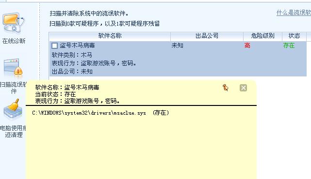 我用卡卡查杀到这样一个木马,但是杀不掉,根据这个查杀路径,我找不到相对应的文件,用瑞星杀毒查毒查不到!