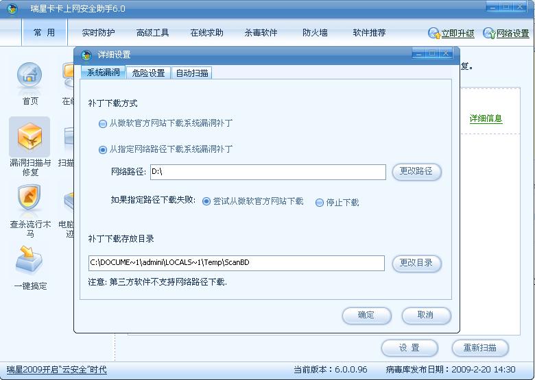以前用的瑞星防火墙升级补丁,把补丁文件都放在一个文件夹下,重装系统后想打补丁直接把防火墙下载目录改为补丁地址,连接网络后探测到我本机上有这个完整的文件就不用 重新下载了,很方便。但是现在换成卡卡升级了,发现没法使用这个办法了,还要老实的去下载一次补丁,即使我本机上有这个文件,非时间啊,请问现在是 怎么解决的啊 ?