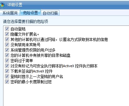 还有我如果这里取消勾选。。卡卡提示无漏洞。。但是瑞星安检却提示还是有漏洞。。这个问题需不需要在改改。。。这么久没有发现两个东西提示不一致么。。希望改改