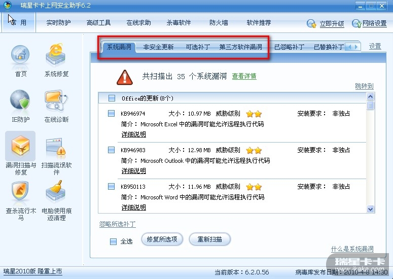 [求助] 卡卡的漏洞修复和瑞星不同步