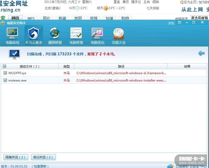 请问这是卡卡的误报吗?百度查说是系统进程卡卡说是木马
