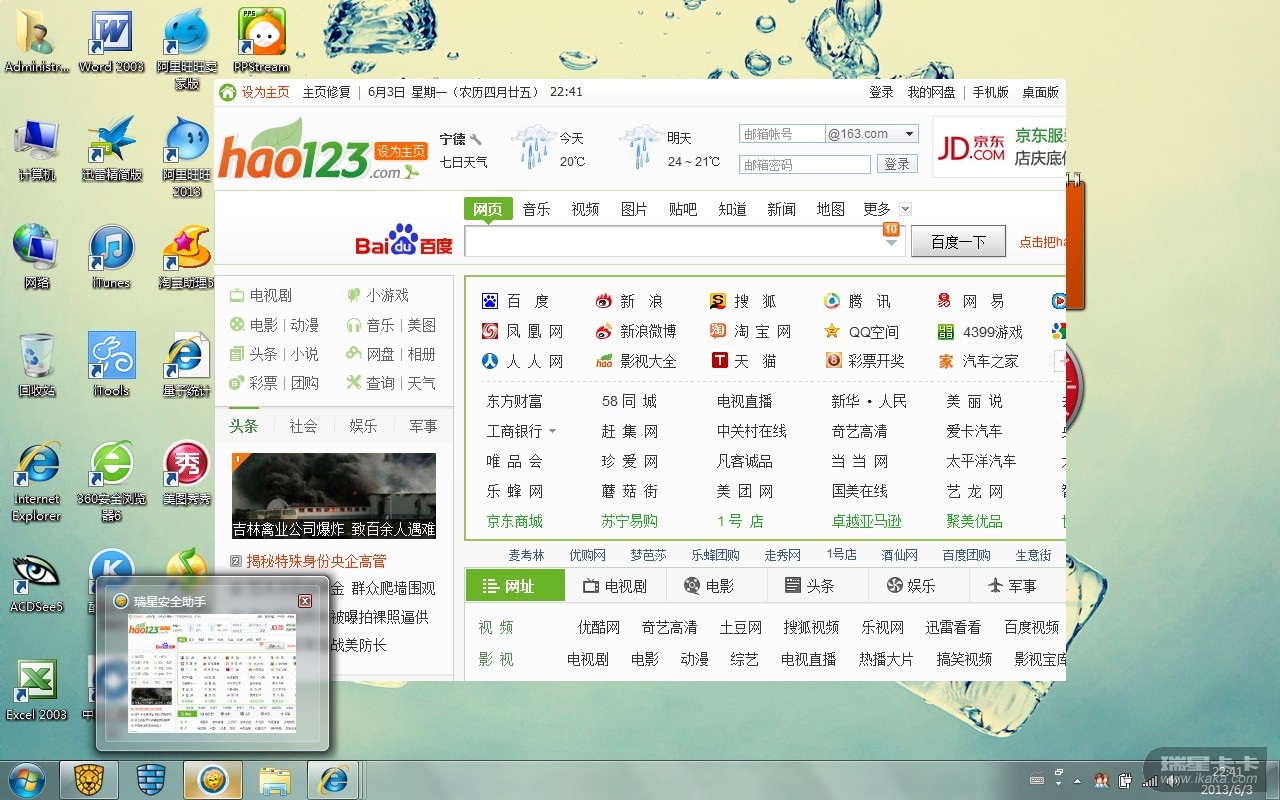 这两天开始打开瑞星安全助手,一会儿就变成了hao123的主页,而且IE主页之前也是瑞星的网页导航大全,也变了hao123主页.....什么情况???有图片!!怎么发图?