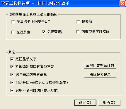 在启用卡卡工具条后,在打开浏览器的时候就可以对其进行设置。