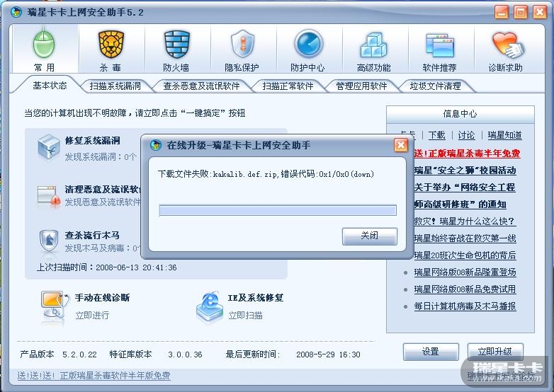 360卫士、新毒霸破坏瑞星杀毒导致升级失败(升级提示XXXXXXX 800006)的解决办法