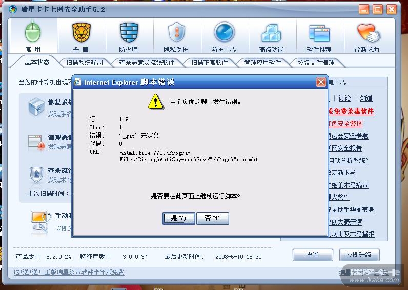 回复:我的卡卡助手开启有脚本错误提示,请指教!
