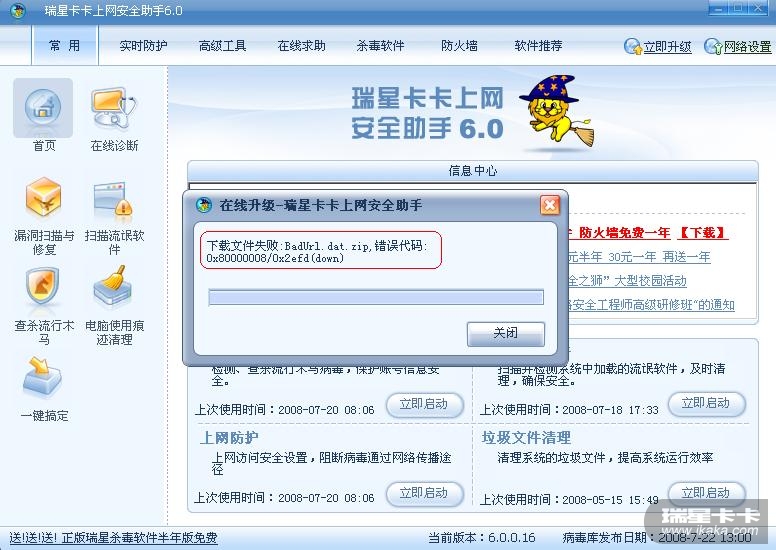 360卫士、新毒霸破坏瑞星杀毒导致升级失败(升级提示XXXXXXX 800006)的解决办法
