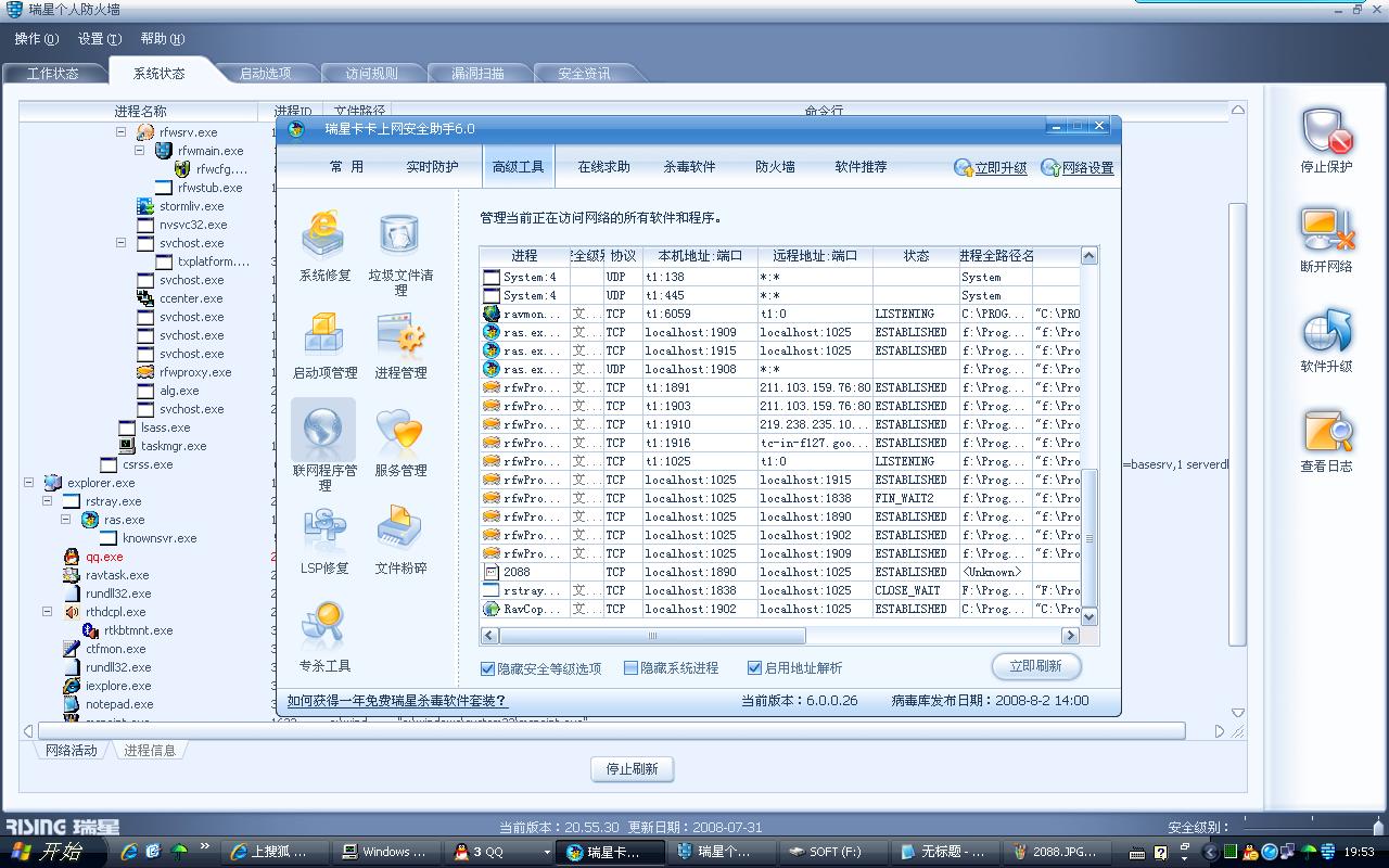 瑞星无法解决问题!卡卡6.0中总是出现数字命名进程,无路径名显示,提示(unknown),请高手指点