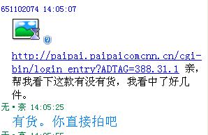 这是个仿冒的腾讯拍拍网站,最近经常收到,以购物为名,发出一链接,卖家以为是商品链接。点开后要求输入QQ密码和交易密码。大部份人都没注意点开输入后,密码被盗。
