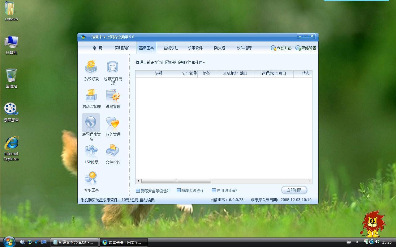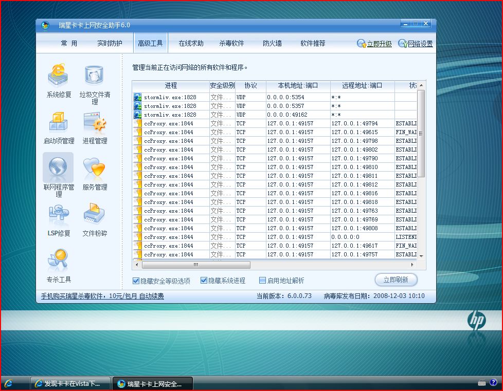 :发现其的联网程序管理在vista下看不到任何进程(即使将安全进程 系统进程全部显示)请改进。如图联网程序管理.jpg