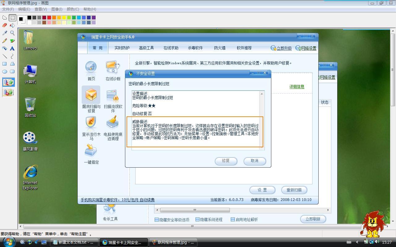 :发现卡卡的漏洞扫描,发现“密码长度最小值限制过小”项显示错误!!!