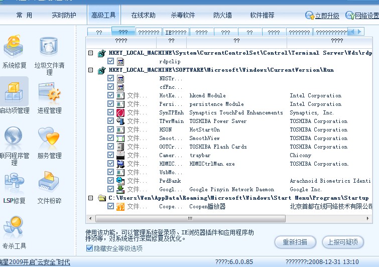 瑞星2009测试版问题反馈