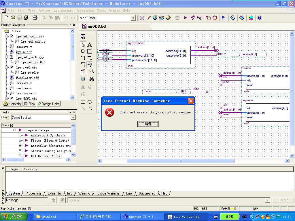 我最近用到altera公司的eda软件quartus,因为要建立ip core所以需要启动java virtual machine.但是每次启动总是提示不能建立JVM。后在altera官方论坛上看到是有可能与杀毒软件冲突。于是经验证发现卡卡有3个防护与JVM冲突,分别为“木马行为判断与拦截”,“木马下载拦截”和“IE防漏墙”。我装得是jdk1.4,后升级jre至jre6.卡卡的版本是6.0.1.52。