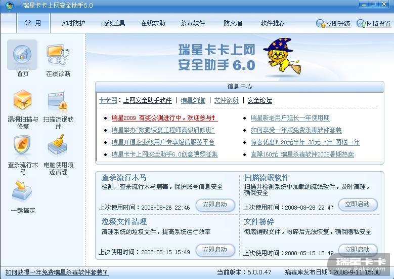回复: 瑞星卡卡上网安全助手历史版本画面回顾