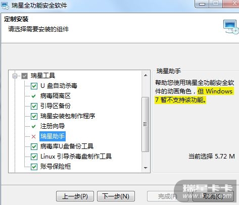 我的天!今天才发现,原来卡卡目前居然不支持Windows7,从2005年开始使用正版瑞星到现在,别的杀软再具诱惑力我都没有换,因为我就喜欢那头小狮子!
