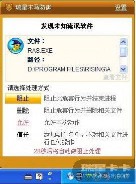 [求助] 卡卡拦截瑞星?瑞星拦截卡卡?懵了...官方出来解释下?用了这么多年,情何以堪啊