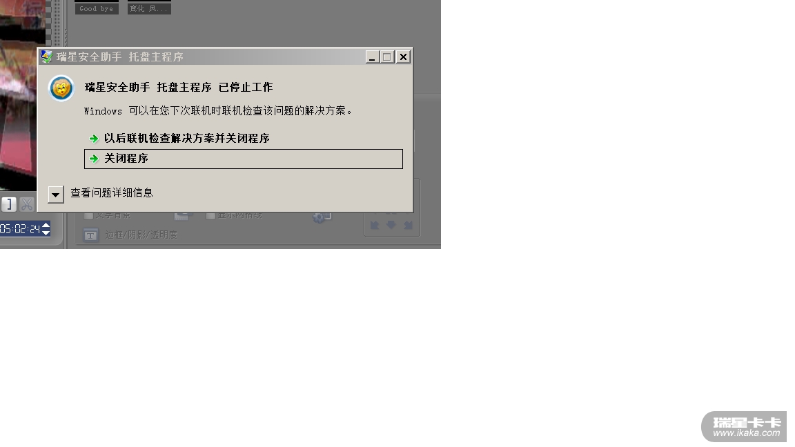 [求助] 瑞星安全助手 主程序 已停止工作