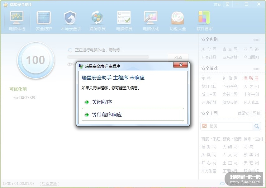 回复: win7旗舰64位 用瑞星安全助手问题!