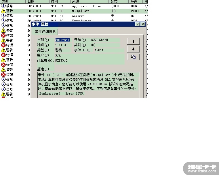 [求助] 系统日志显示mssql$ravn错误,重新启动失败