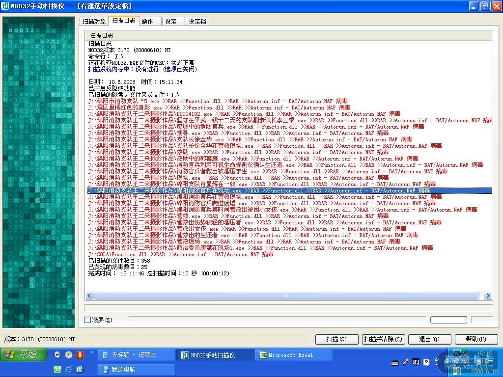 防御?4楼的,安全工程师,请问,你都查不出来是病毒何来防御?我现在将一个NOD32的扫描截图和瑞星今天的病毒库的扫描截图发出来你看看,难道瑞星要一直这样错下去么?就是因为你的这个防御,我全部都打开过了,什么主动防御那些的,全部是开启的,可是一台电脑已经中招了,本来那天的毒是用卡巴斯基杀掉了,本以为没有毒来试验了,可是刚刚看了一下那台电脑,还是中招了,考虑到瑞星与卡巴斯基有冲突,今天换了一个NOD32,现在将截图送上,大家都是有眼睛的,可以看,如果你不信,我还可以将这些病毒打包发给你,你自己去查,把你的邮箱地址给我就行了