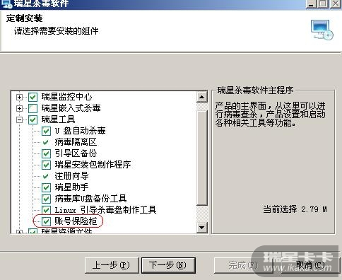 点击开始-程序-瑞星杀毒软件-添加删除组件-添加删除-下一步。