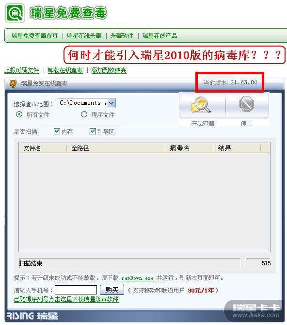 瑞星在线查毒何时才能引入2010版本的病毒库???