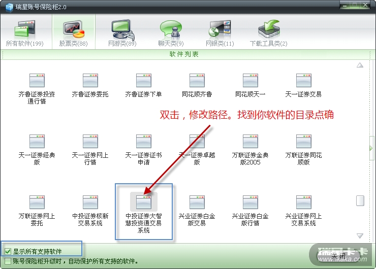 我用的是 中投证券投资通 在账号保险柜列表里面没有