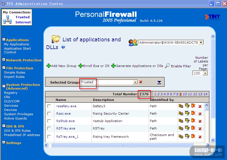 对Trusted组内程序的文件访问、注册表操作、DLL加载、服务操作、系统权限的获取等不加限制。