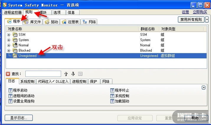 5、Uregistreted组。其实,这个所谓“虚拟群组”指的是除上述1-4组之外的任何程序(即:SSM规则列表以外的的程序。)