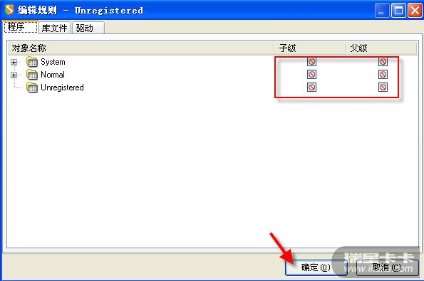 2、禁止Uregistreted组与其它各组的父子进程关系(图2)。