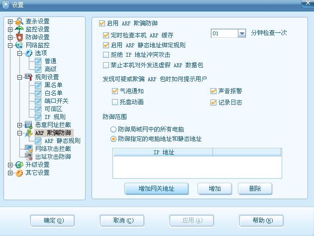 楼主可在防火墙的防arp欺骗设定中设置仅监控本机地址就可以了。