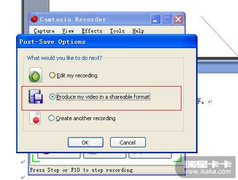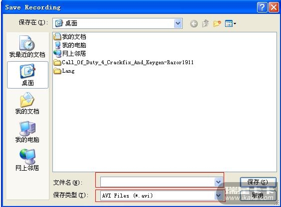 出现文件保存对话框,选择AVI,文件名英文或数字,不要用汉字。
