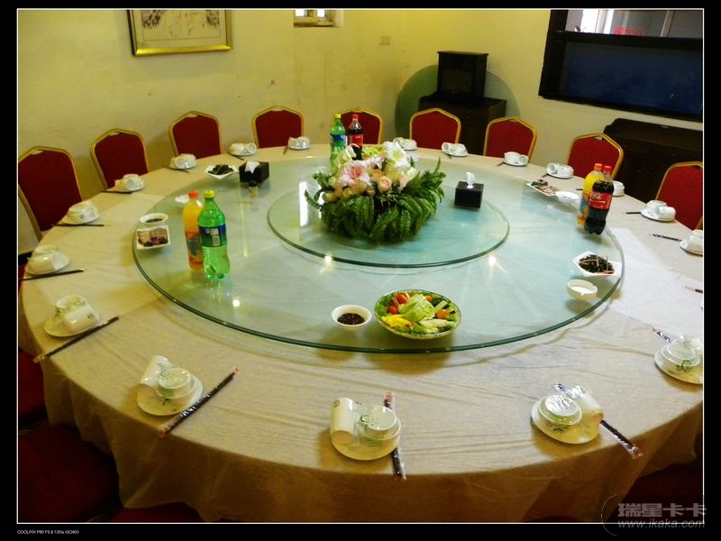 这不是,见过如此巨大的大圆桌么~~一家伙可以坐满20位的~~这里就是北京西边小有名气的八大锅饭庄~八大锅,顾名思义,就是八口大锅一字排开,烹煮各色美味食品