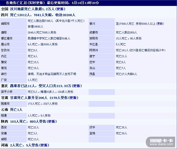 回复:各地伤亡汇总(实时更新) 最后更新时间:5月13日16时35分